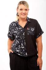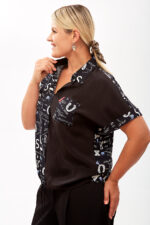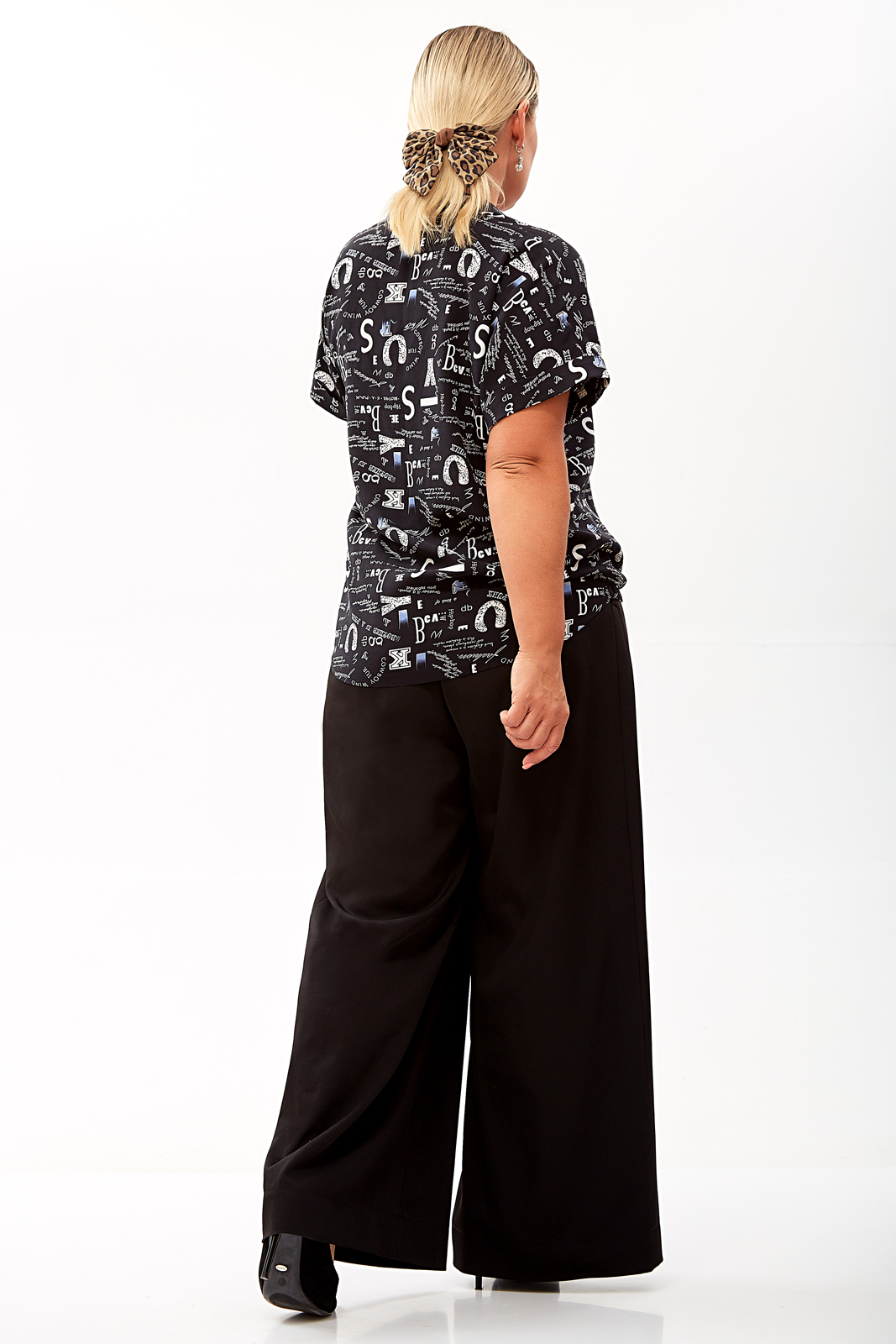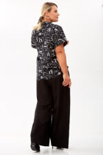 Эта блузка свободного силуэта сочетает в себе элементы классического и спортивного стилей, что делает её универсальной для различных поводов.